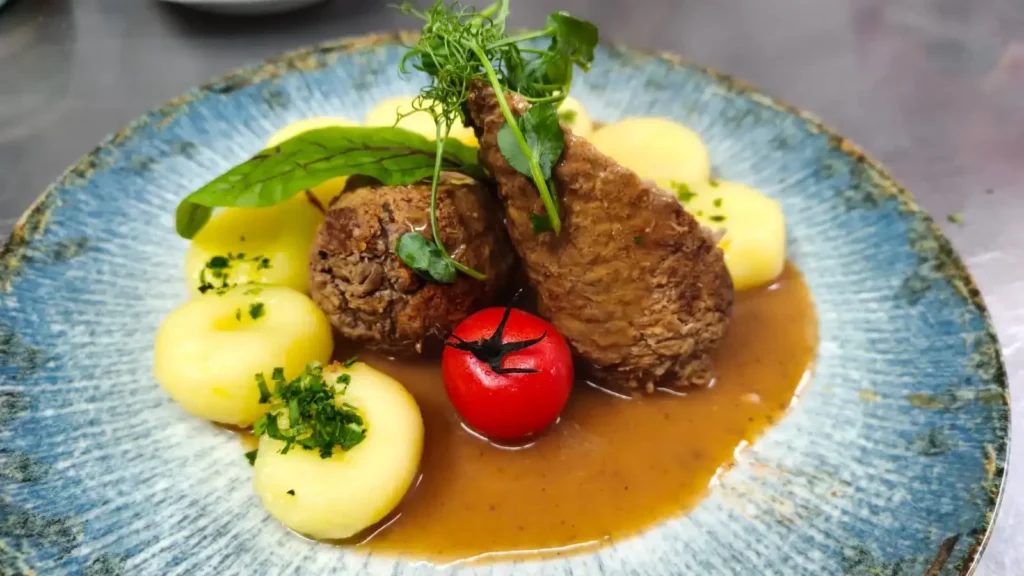 Rolada śląska z kluskami śląskimi i modrą kapustą